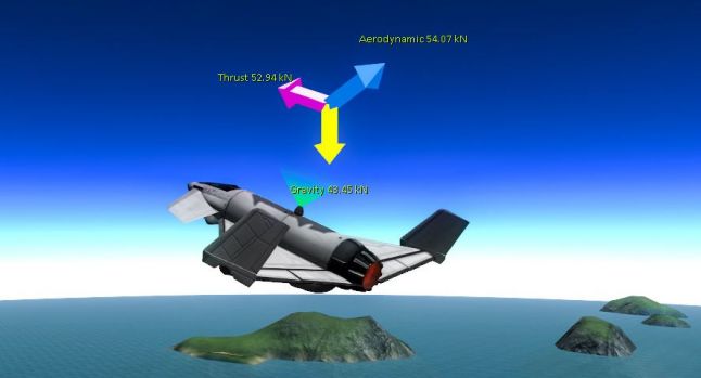 Arrows show the forces affecting your spacecraft in KerbalEDU