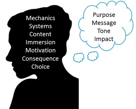 After all, marketing can promise anything from escapism to empowerment to education. To a designer, a game’s image is a promise, which the game design then can abandon, fulfill, or exceed. Designers ask ourselves what is our game communicating? What difference will our game make to a player? Why are we making this specific game?*