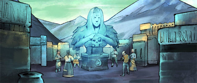 A slice of a recent cutscene, promising mythological ramifications in Moon Hunters.