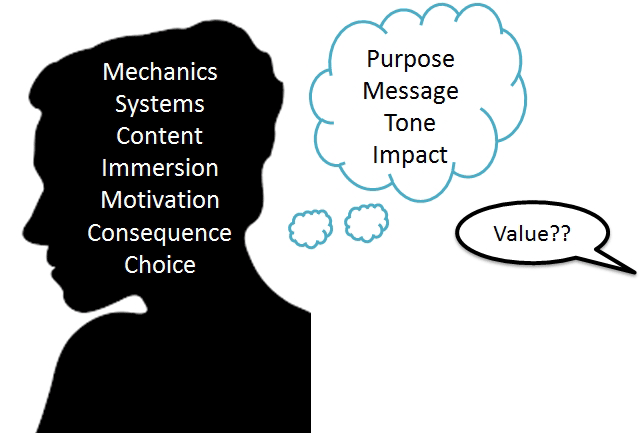 To many designers, including Past Me, the value seemed self-evident within a well-designed, well-marketed game. It’s valuable because it’s balanced and huge and immersive and fun and meaningful and interesting and well-made! In fact, it’s awesome. Why aren’t we done yet?