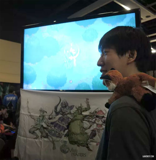Kitfox programmer & co-founder Jongwoo, showing off the Moon Hunters trailer at PAX 2014.Photo by Mariko at Gamerwife.com